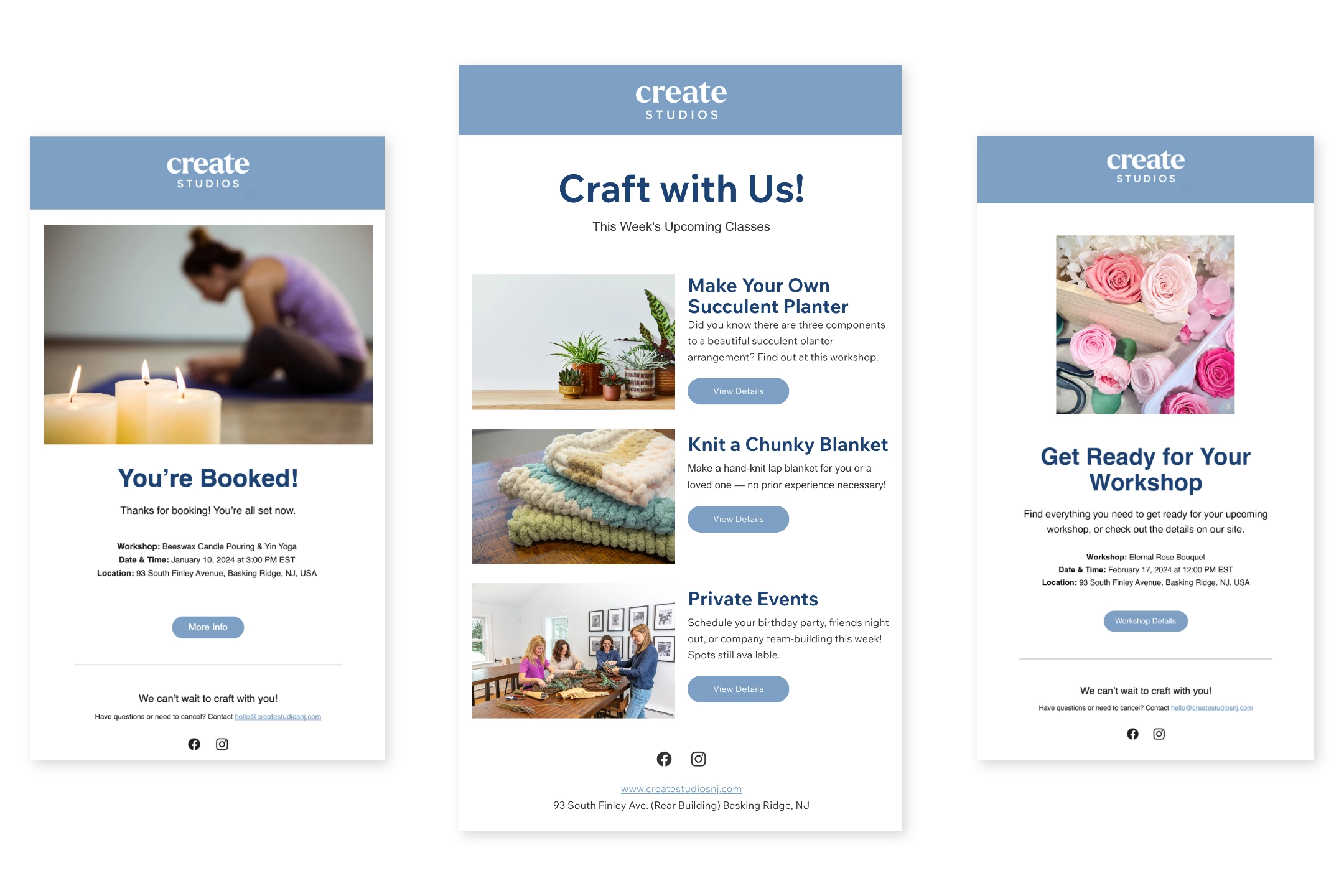 Create Studios brings an easy, fun, and social crafting experience to downtown Basking Ridge, NJ. We designed a logo and website for maximum flexibility and function in running the business, so scheduling, booking, and marketing classes is a breeze.